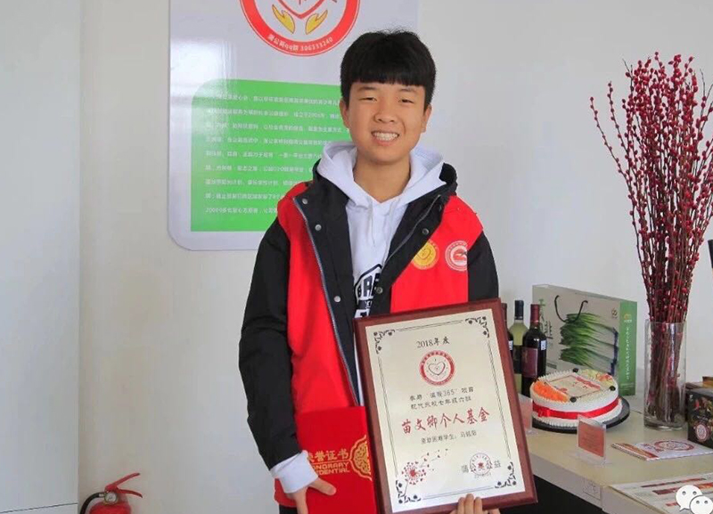 苗文卿同学热心公益活动,从小学开始跟随家长一直长期参加公益助学。在寿光市蒲公英公益服务中心组织的关爱困难学生活动中,苗文卿同学多次把自己零花钱、压岁钱捐赠出来为困难学生送去一份关爱,参加“温暖365”志愿服务项目,为多个困难学生每年资助365元;参加“贰零爱”项目,为蒲公英帮扶的70名孩子长期奉献一份爱心,入选蒲公英公益小天使团队,多次被评为优秀小志愿者。