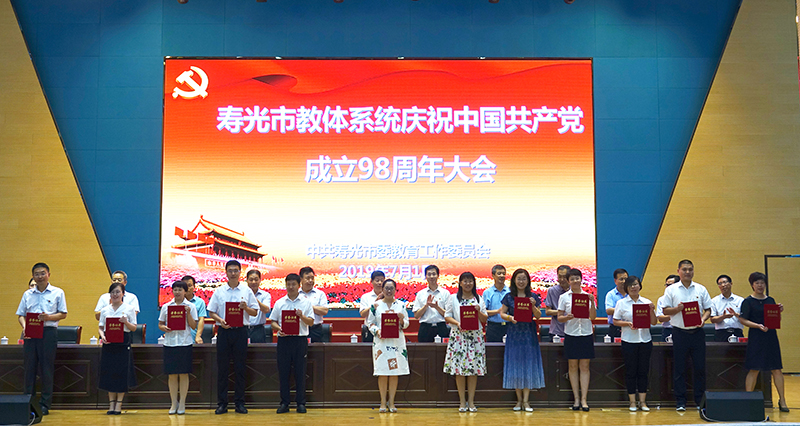 7月1日,全市教体系统庆祝建党98周年大会在我校召开。市教体局局长、党组书记李玉明为与会人员作党课辅导,总结教体系统上半年工作,对暑期及下一步重点工作进行调度安排。市教体局二级主任科员刘福昌主持。会议对寿光中学党委等20个先进基层党组织、明珠小学等22所党建工作标准化建设示范学校、刘璐等114名优秀共产党员、王伟等30名优秀党务工作者和徐丽等20名优秀党员导师进行表彰。