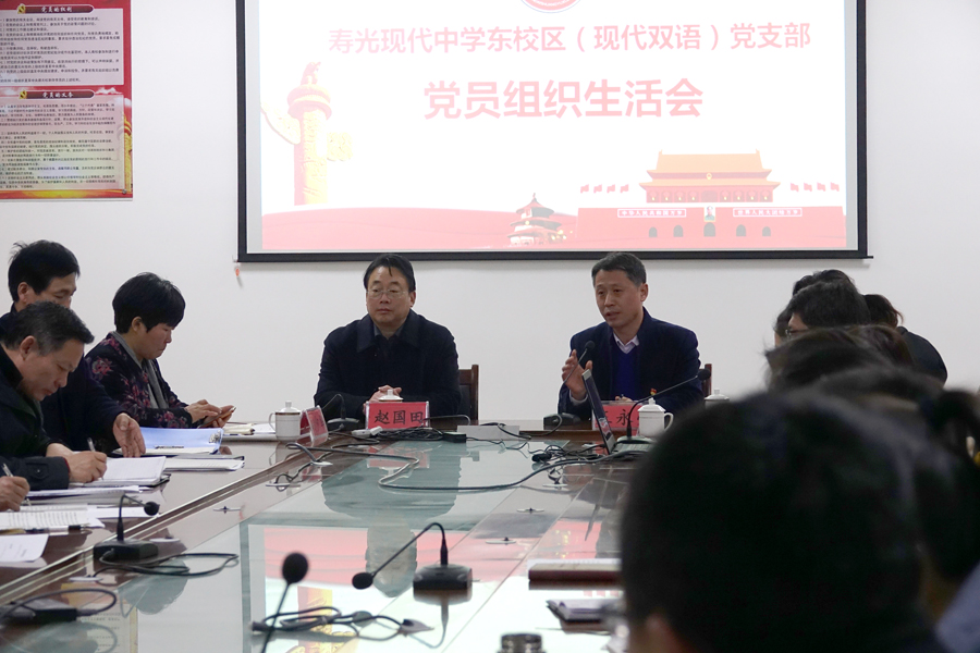 2019年2月25日,现代中学东校区党支部召开党员组织生活会,学校党委联系指导员现代中学赵国田,学校党支部书记王永亮、支部委员及全体党员出席会议,10名非党员教师列席了会议。