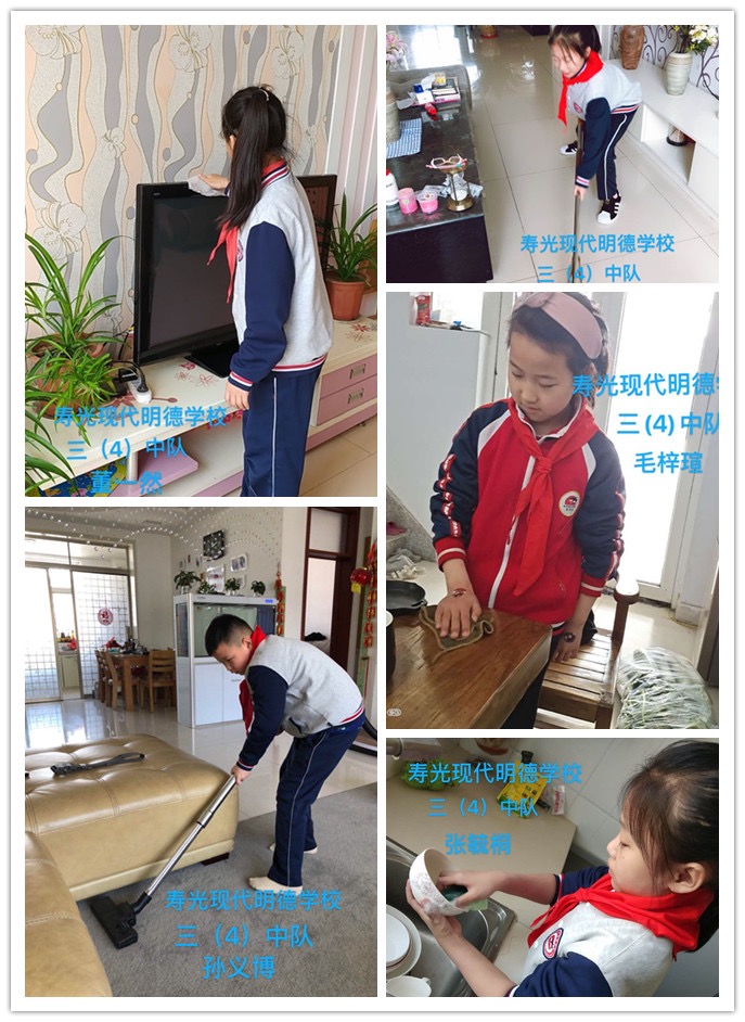 在辅导员的引导下,少先队员了解全国劳动模范的先进事迹,并通过讲故事、写文章的方式,表达出自己真实的感受。与爸爸妈妈换一天岗,洗衣、做饭、打扫卫生,体会家人劳动的辛苦!少先队员们还拿起手中的画笔,描绘劳动节的由来、劳模的先进事迹、平凡的劳动者、多彩的劳动活动……倡导队员们热爱劳动,从我做起,积极践行“中国梦劳动美”。