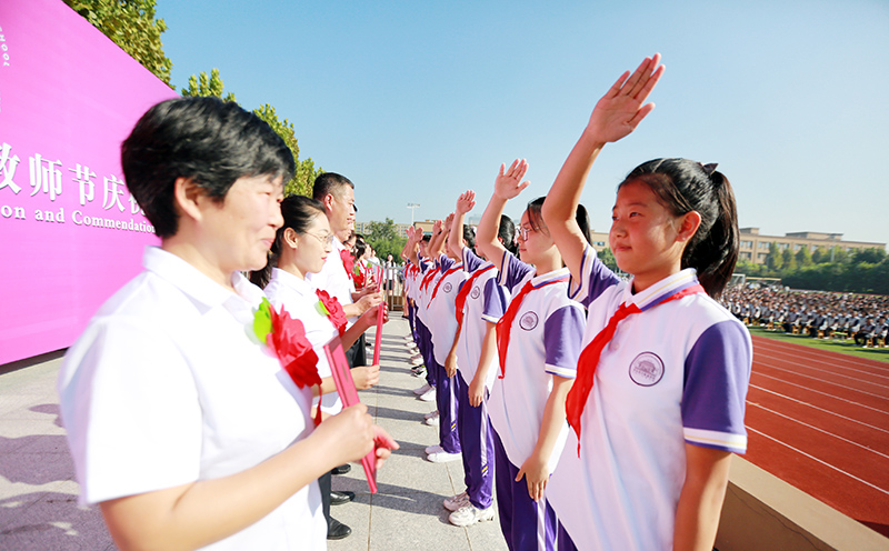 活动最后,师生相对庄严宣誓,全体教师铮铮誓言铿锵有力,3000多名学生铮铮誓言壮雄心,许下不辱使命的承诺,不负众望的担当。