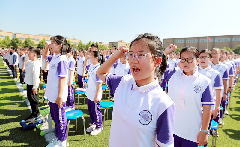 9月9号上午,寿光现代明德学校全体师生及家长代表3400多人齐聚风雨操场,共同见证新学期、新开端,迈上新征程。