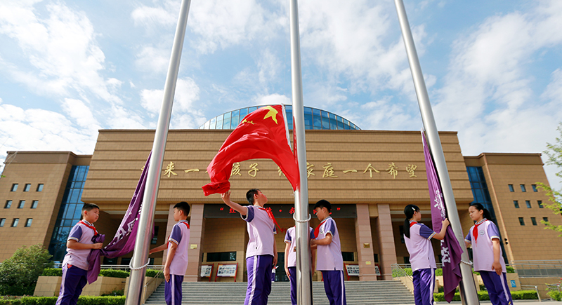 寿光现代明德学校高度重视广大师生的思想政治教育,定期举行升国旗仪式主题教育活动。现代明德人将沿着无数优秀共产党人前进的步伐,在党的光辉旗帜指引下,扎根在初心上,成长于使命中,奋进在新时代,为中华民族伟大复兴中国梦的实现、为学校建设贡献力量!