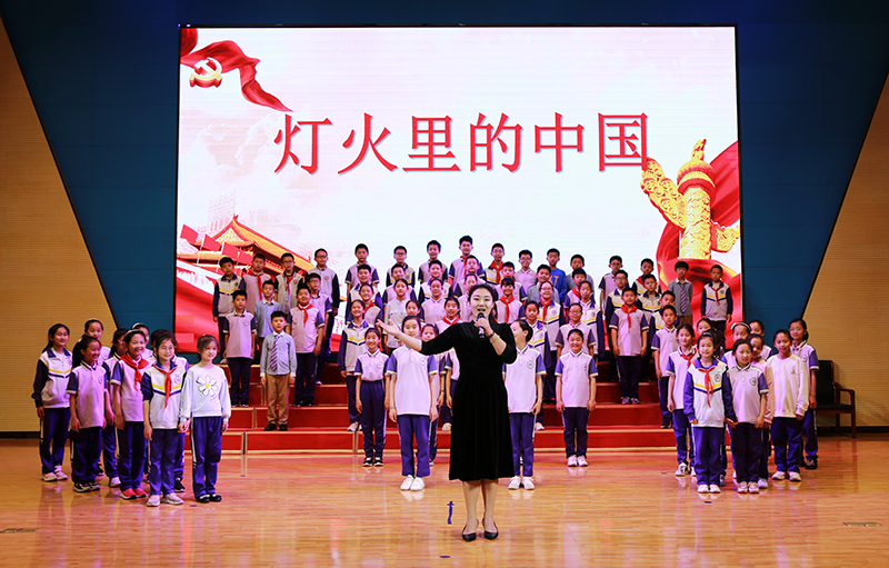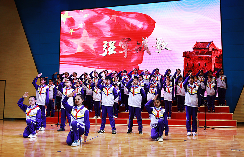 精神有指引,脚下有力量。学校以活动为载体,全方位营造“红心向党”的浓厚氛围,以明德方式开启的“致敬百年”系列主题活动,突出爱国主义、家国情怀,利用电子屏、黑板报、主题班会、红色歌曲展播等形式,知党史,颂党恩,培养爱党爱国情操。在课程中引入爱党主题——音乐课学唱红色歌曲、美术课描绘为党献礼、语文课诵读爱国诗词、开展主题写作、社团课排演红色故事情景剧,全校范围内的主题升旗仪式、书画展等活动也在火热进行中。