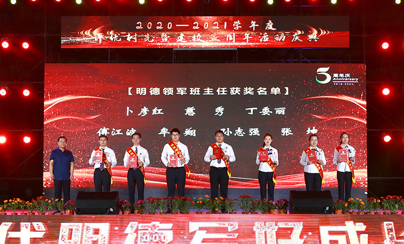 2021年9月29日晚6:30,寿光现代明德学校“奋进 再谱新华章”2020—2021学年度评优树先暨建校五周年系列活动庆典在风雨操场隆重举行。