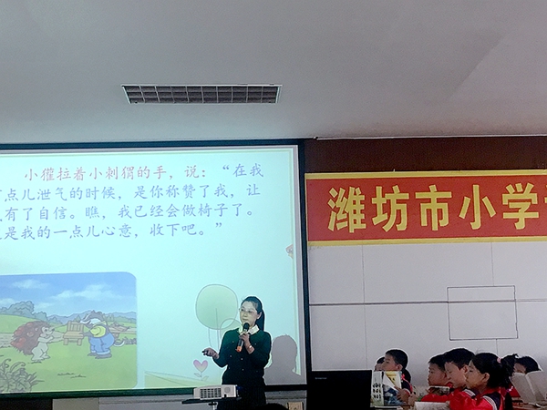10月25日下午,潍坊市小学语文优质课堂教学展示活动在临朐外国语学校举行。经过各县市区层层选拔,现代中学东校区甄艳老师作为寿光的唯一代表代表参加了展示,她的语文课《称赞》得到了与会专家的高度评价。