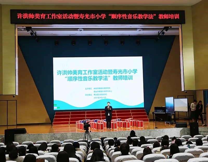 4月21日,许洪帅美育工作室活动暨寿光市小学“顺序性音乐教学法”教师培训活动在我校举行,来自中国教育科学研究院的许洪帅博士开展音乐课程教学专题指导,寿光音乐学科教研员及各学校音乐骨干教师百余人参加了培训。