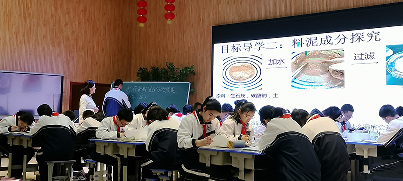 刘倩老师以学生熟悉的松花蛋入手,设计主题活动实验课,将知识问题化、问题情境化,学生在解决真实问题时不断将知识内化迁移,进而自主构建酸碱盐的知识体系,同时培养学生的科学探究能力;刘老师还巧妙利用数字化手持技术更加形象直观的展示废料处理过程,激发学生兴趣的同时树立环保意识,赢得与会专家和同行们的一致好评。