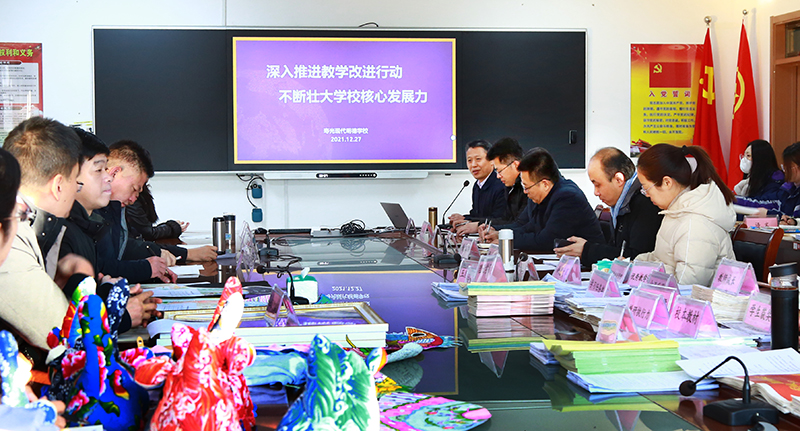 12月28日,潍坊市教科院副院长逄凌晖及李宏绯科长、于芳民副科长、王晓春老师到我校调研教学改进工作。寿光市委教育工委副书记黄本新、寿光市教科研中心副主任张瑞海及相关学科教研员,寿光现代明德学校教研联盟校成员校校长及学科骨干教师共同参加了活动。