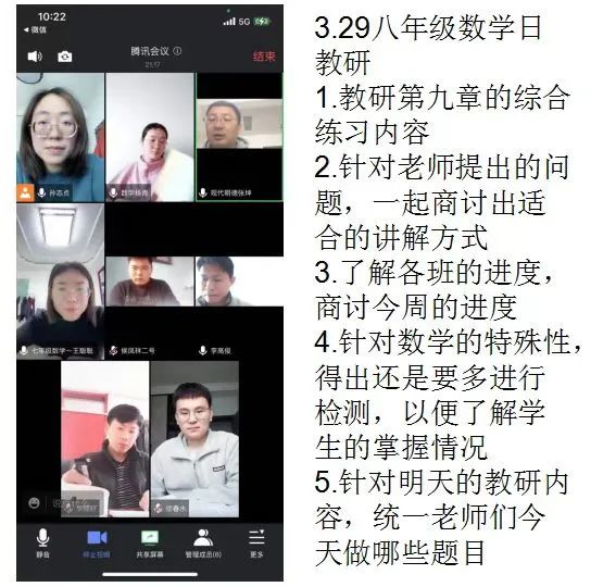 学科教研聚焦课堂,针对前一天网课中发现的问题和亮点,进行剖析,商讨解决方案,以智慧共享的方式,补齐课堂短板。针对当天的网课定目标、定计划,向课堂40分钟要效益。