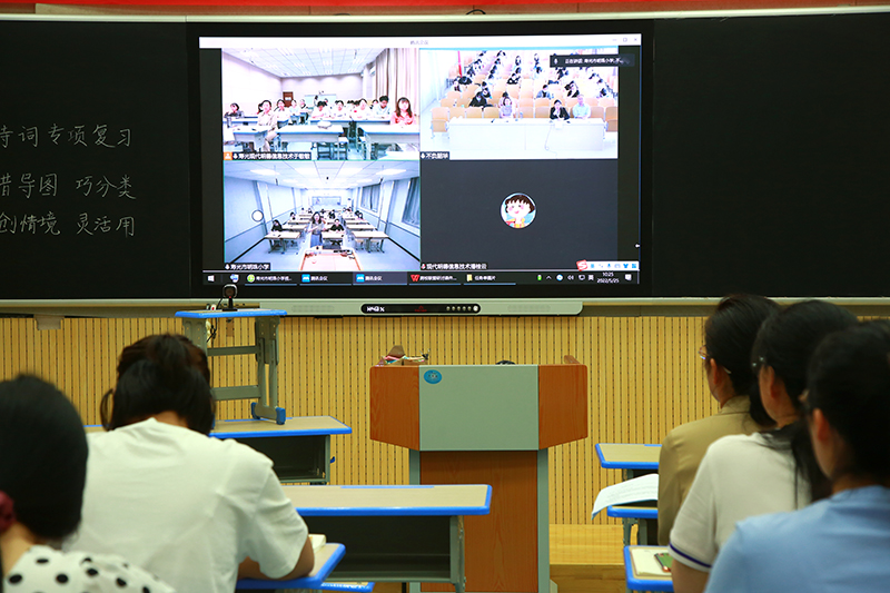 参加活动学科骨干教师“云端”连线观摩了我校和明珠小学语文学科的古诗文专项复习、综合性学习,数学学科的比与比例、立体图形复习,英语学科两个单元的复习课例。课堂上老师们展现的专业素养给教师们留下了深刻的印象,参加研讨交流的老师们肯定了明德老师课堂创新的热情和实践、研究课堂的态度,以及对学情的精准把控,对教学的精心设计,对重难点的高效突破。