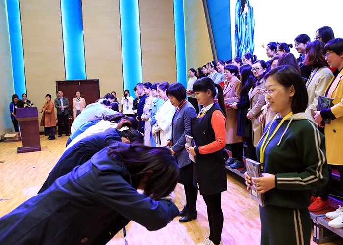 全体教师举行了青蓝结对、青青结对拜师仪式。韩少华、徐翔分别宣读结对名单,学校为师傅颁发聘书,徒弟向师傅行拜师礼,一揖到地即一诺千金,行完隆重的礼结成新的成长团队,青蓝结对,薪火相传;青青结对,齐头并进。师傅代表和徒弟代表分别发言表态,在未来的工作生活中相互帮助、相互促进、共同提升,形成一加一大于二,一帮一一对红,多带多一片红的效果。