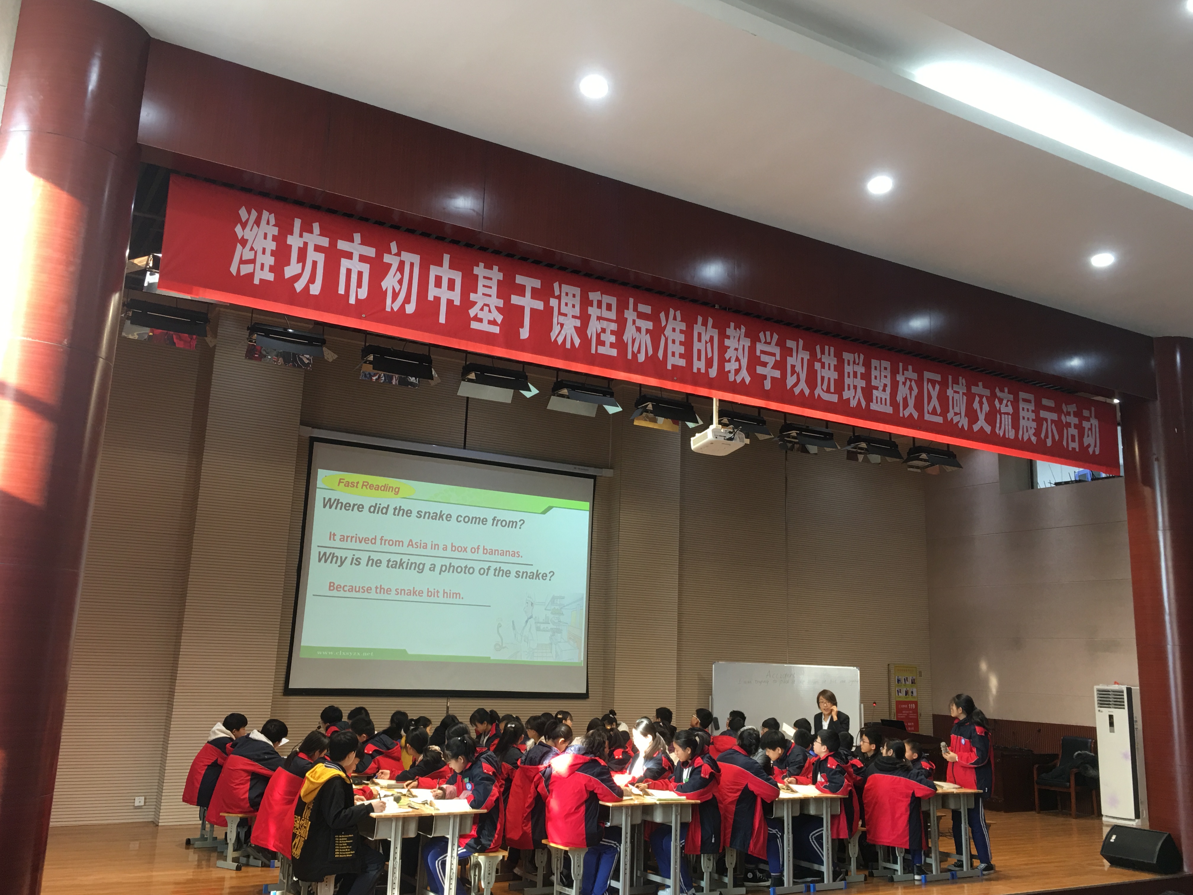 11月29日上午,在学校领导韩校长、傅主任、丁主任、张坤主任的带领下和英语组、政治组的几位同事出发去昌乐市实验中学,参加潍坊市初中基于课程标准的教学改进联盟校区域交流展示活动。很荣幸能跟从几位领导和其他几位同事一起外出学习,了解潍坊市关于课程标准的教学改进活动,以便于让自己更加了解潍坊市命题活动的趋势,把重点放在自己的教学改进上。