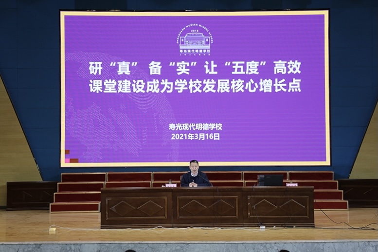 会议中,学校党支部书记、校长王永亮以《“研”真“备”实 让“五度”高效课堂成为学校发展的核心增长点》为主题,对全校教研工作提出了要求。王校长指出,教研兴则学校兴,教研行则教师行,老师们要进一步统一思想、提高认识、实“研”精“研”,实“备”精“备”,全力推进基于课程标准的符合“教学评一致性”要求的“五度”高效课堂建设。通过提升自己的业务能力,做孩子们崇拜的良师、打造孩子们喜欢的五度高效课堂。