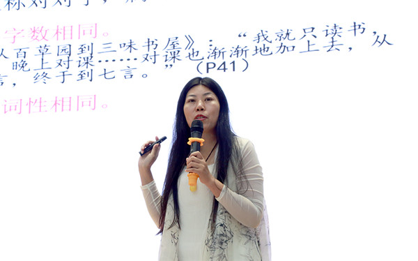 “诗心即童心,诗心即灵性”,在“对课”的学习中,西岭雪将格律诗与大家喜闻乐见的电视节目相结合,强调了“字数相等、词性相同,平仄相反、语句通顺、意境优美”等作诗基本要求,借助大量佳联给学生以引导,让他们有所思、有所悟。在布置作业、现场作业批改环节,同学们小试牛刀,已有很大进步。此外,蔡承晓老师也教授了吟唱,在平仄的学习中,在“云对雨、雪对风”的吟诵中,慢慢品出其景其情,其意其感。