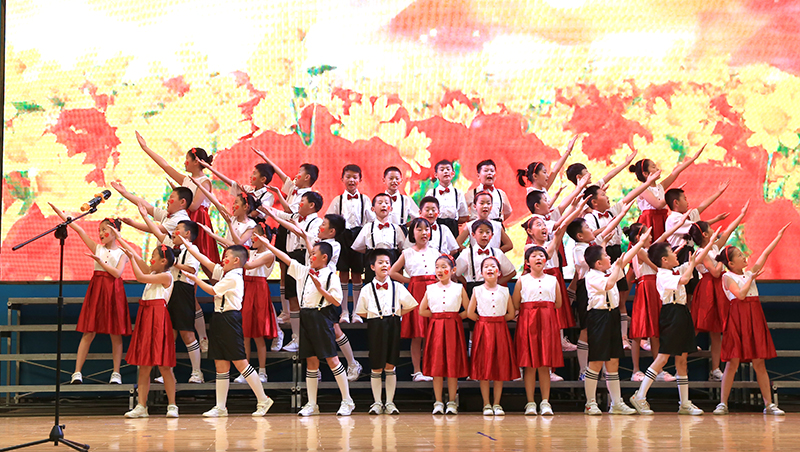 孩子们以饱满的激情,嘹亮的歌声,回望百年青年运动历史,唱响了时代的主旋律,也展示出双语学子的青春风采。