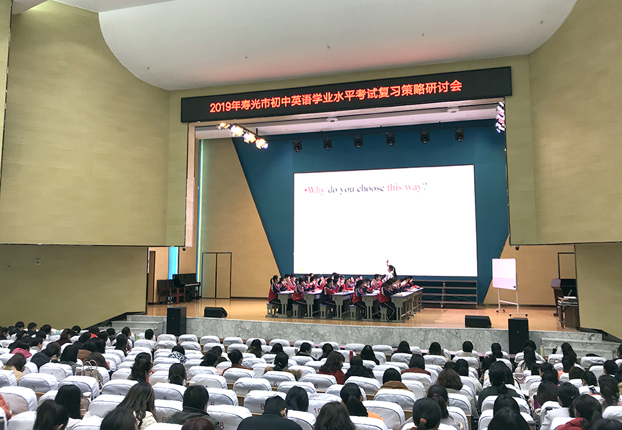 在研讨会上,寿光现代中学东校区张琳老师出示公开课,张琳老师的课堂设计和对学生口语的强化训练赢得了听课老师们的赞誉。世纪学校和建桥学校的英语学科骨干教师分别作经验介绍,给大家介绍了很多值得学习和借鉴的好经验、好做法。寿光市教科研中心英语教研员徐百见主任针对目前在英语教学活动中存在的问题,从思维定式、学科素养、课堂效率、试卷批阅、教学常规等多方面进行了一一评析,提出了整改的要求。同时从人机对话、笔试科目进行了考点分析、考试说明,并重点提出了复习应考的教学策略和复习方向,解答了老师们在教学和复习方面存在的诸多困扰。