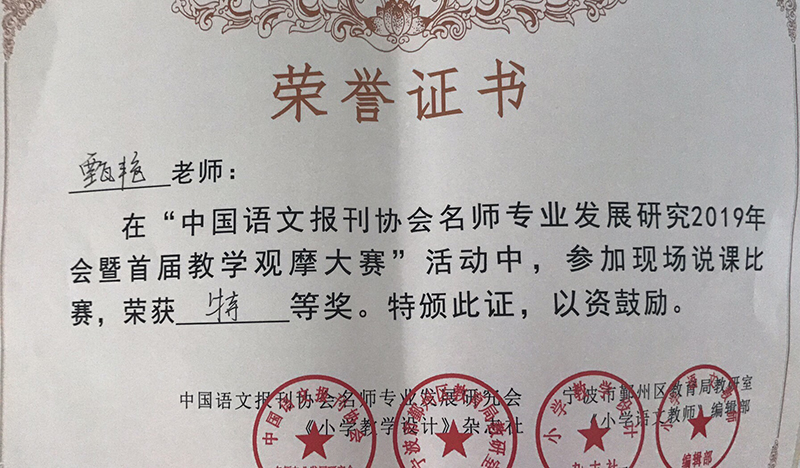 甄艳老师荣获现场说课特等奖