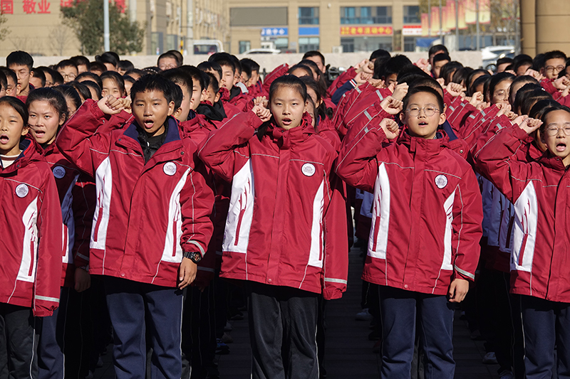 王昆老师领读了《宪法晨读内容》,全体师生同唱了《宪法伴我们成长》,赵一铭同学作为学生代表谈了“学宪法、讲宪法”体会。对全体明德人发出了学习宪法知识,坚守法律底线,捍卫宪法权威的倡议。全体同学在国旗的见证下庄严宣誓,表达了明德人坚决维护宪法权威,和为建设富强、民主、文明、和谐的社会主义国家努力奋斗的决心,共同营造和构建和谐平安校园。