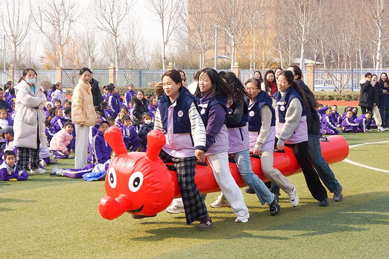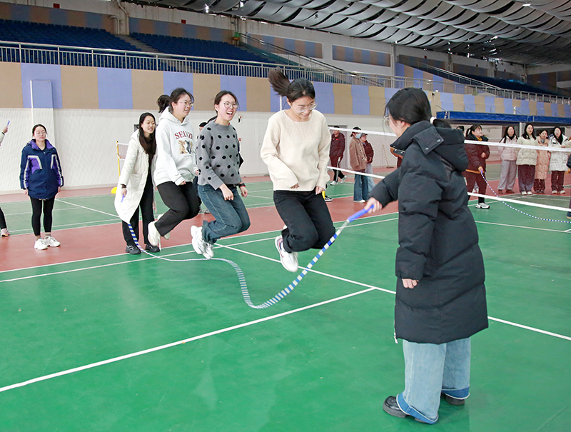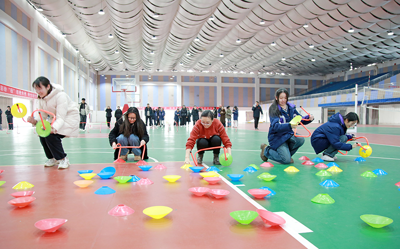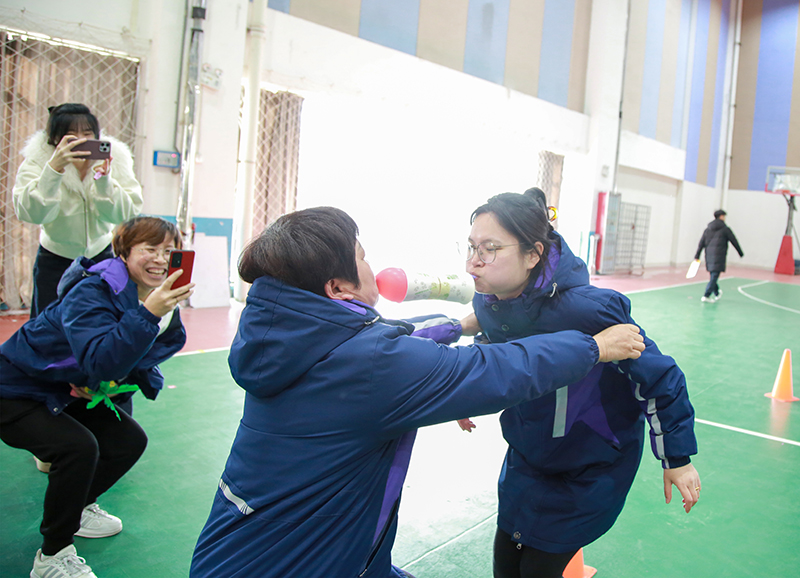 既生温柔叶,也长铿锵枝。“毽舞飞扬”接力赛、“渔乐无限”钓鱼大赛和“气贯长虹”纸杯运输赛,是老师们炫技、拿捏力度和考验持久力的战场。彩毽翻飞间,看一看谁踢的数量多;跨栏钓鱼中,瞧一瞧谁的动作更熟练;纸杯运输也是力气活儿,谁的肺活量大,谁就拥有了更多的胜算!