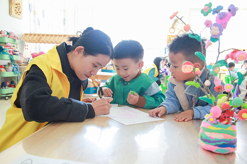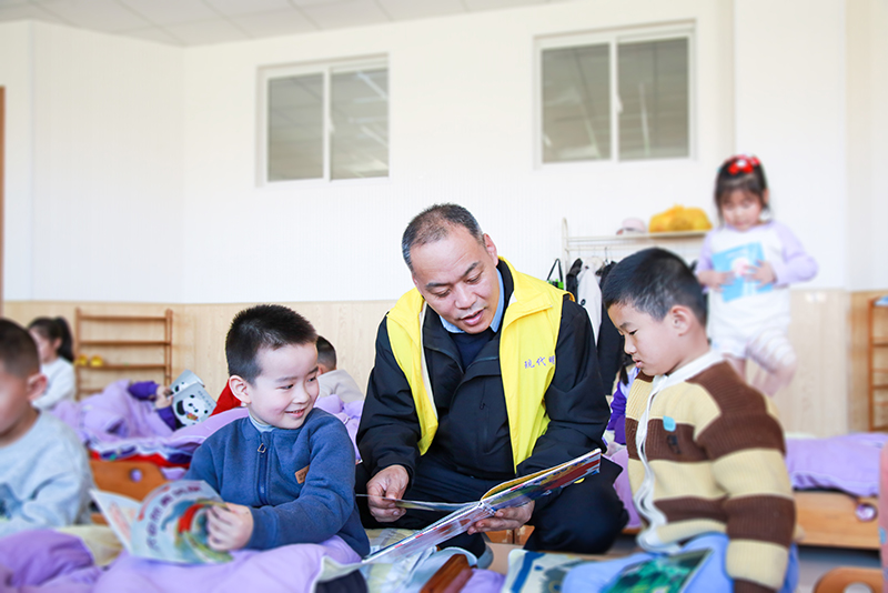 在半天的时间里,部分家长代表化身老师和保育老师......给孩子们讲绘本故事、记录游戏表征、开展体能活动、帮助孩子解决生活“小难题”,参与分餐、哄睡等各个幼儿园的日常环节。