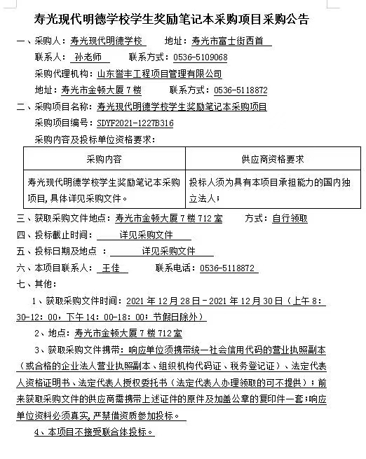 寿光现代明德学校学生将利用纸质笔记本采购项目