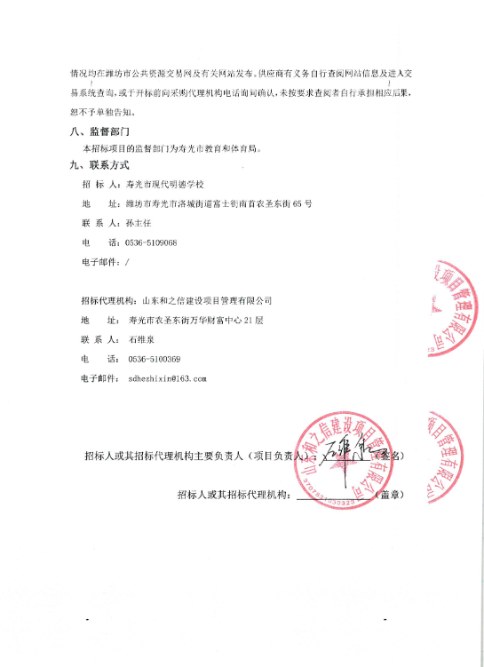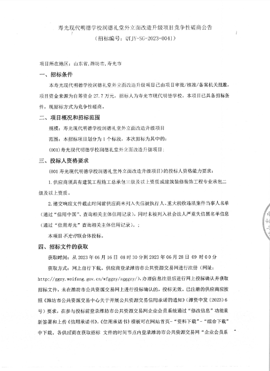 寿光现代明德学校润德礼堂外立面改造升级项目竞争性磋商公告进行公开招标