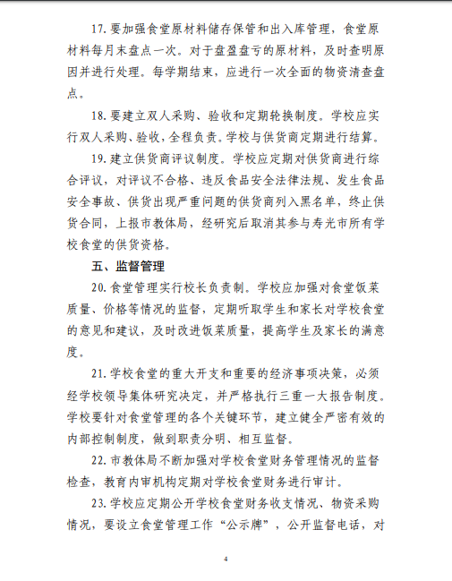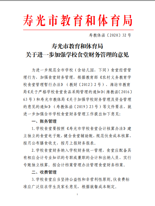 寿光市教体局关于进一步加强学校食堂财务管理的意见