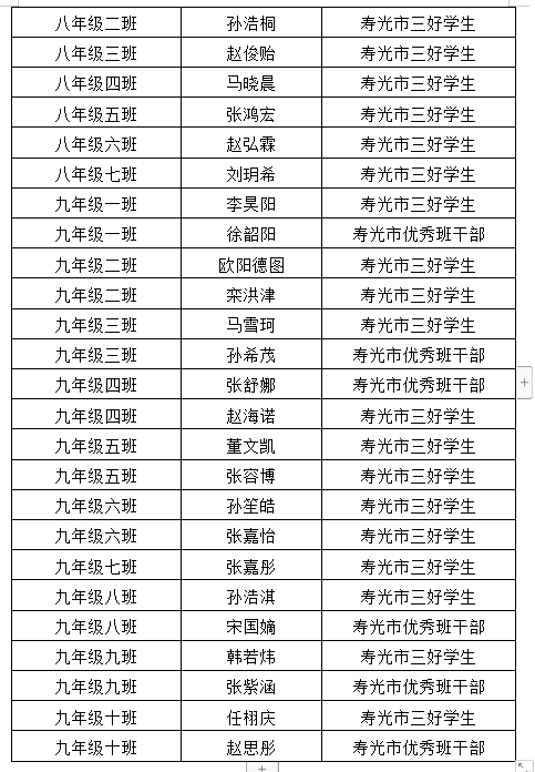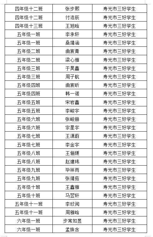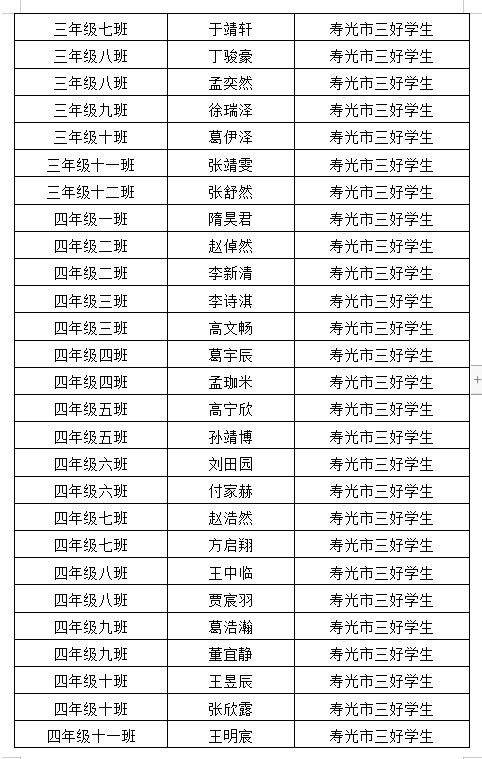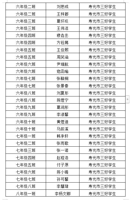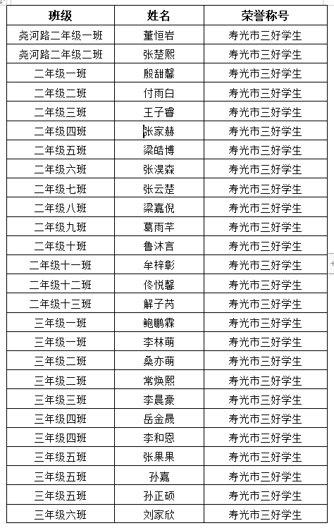 根据寿光市三好学生、优秀班干部评选的通知要求,结合通知中的评选条件,经民主推荐,拟推荐以下学生为“寿光市三好学生”“寿光市优秀班干部”。