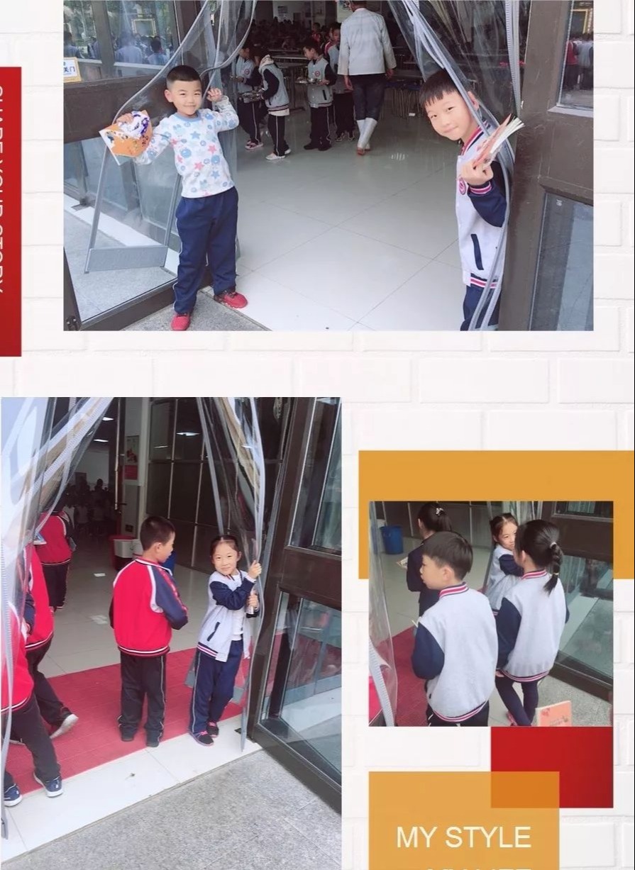 如果要我说出校园里最美的一道风景线,我会说,快来瞧瞧我们掀门帘的小朋友。没有特意安排,孩子们就会自觉的撑起门帘给后面的同学开通一个“绿色通道”。要知道要一直掀着这个门帘,还是有些重的,但是他们从来不说累,不说苦。当其他的孩子们一次通过的时候都会自发的地向“掀帘人”说声谢谢!然后孩子们相视一笑,我想这一刻他们彼此的内心应该都是快乐的!在双语这样的场景每天都在上演,他们互帮互助,积极向上,共同成长!