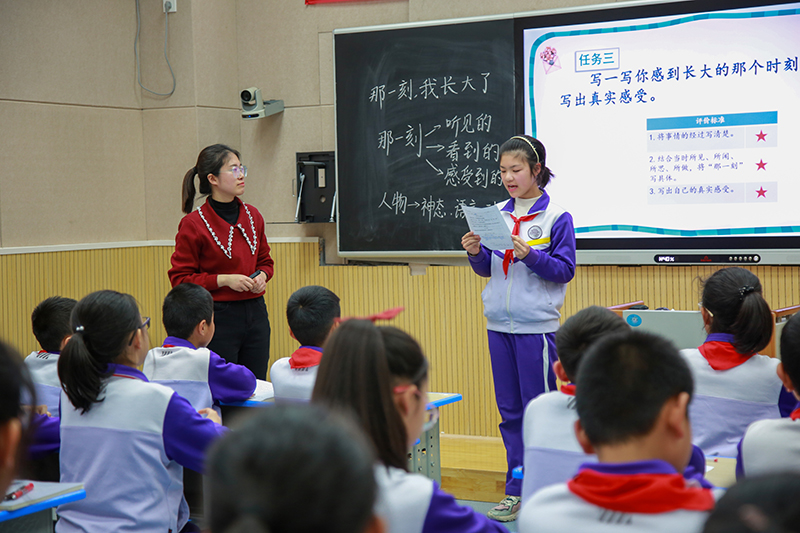 课例研讨阶段,基于课程标准的“语文习作教学”研讨活动中,寿光现代明德学校的刘晓彤老师和台头中心小学的王晓丹老师出示了不同主题的习作公开课。星级评价、小组活动、自主展示,两位老师的课堂内容精、形式活、效果好。