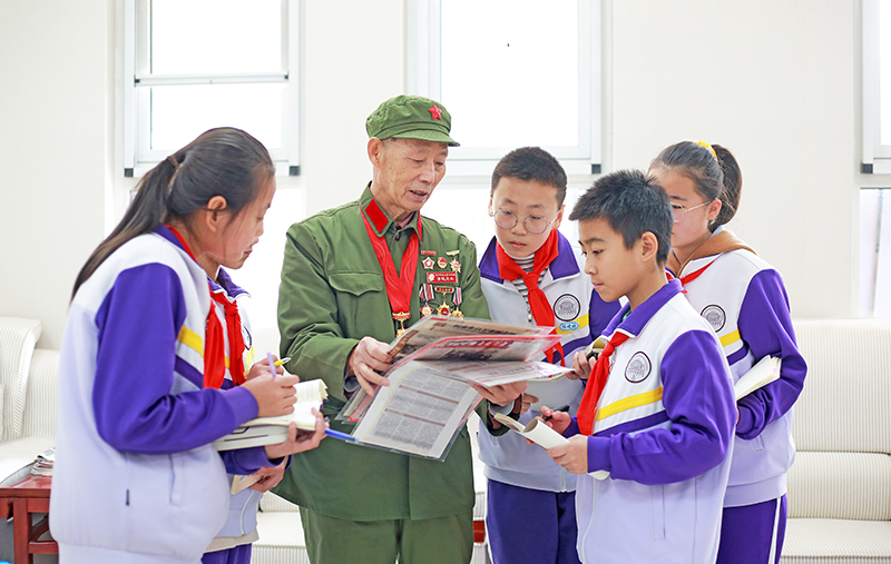 国防教育志愿宣讲团成员、寿光市圣城街道原人大主席、退休老战士苗雨昌同志为参会师生辅导授课,他结合自己的从军经历,用生动朴实的语言讲述了与战友不畏艰险、勇往直前的战斗经历。