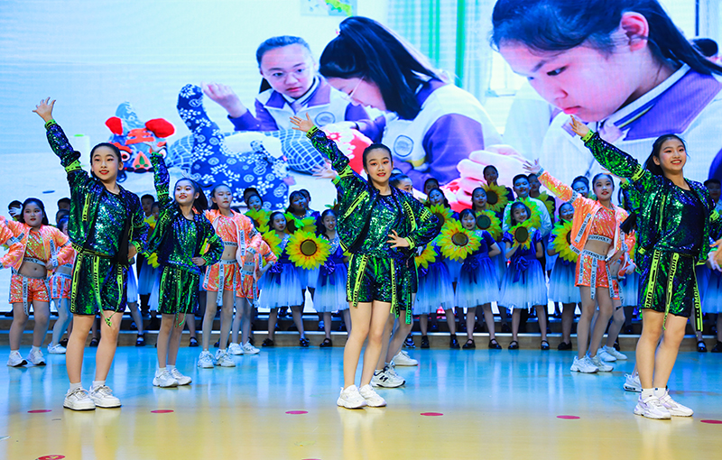 研讨活动中明德学子进行了课程素养展示,经典诵读、合唱、健美操等精彩表演,展现了学校立足“培根”理念,以课程为载体,促进学生全面发展、多元成长的成果。明德学子积极向上的精神风貌、大方得体的表现和高标准的表演获得了与会人员的一致好评。