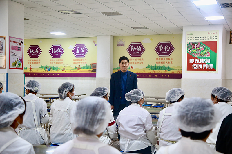 立足餐厅服务,拓“维度”。围绕两类“三jing”打造明德“餐文化”名片。完善餐课程,立足就餐“三jing”(敬、静、净),抓实学生六爱双养,形成有礼、有序、节俭、文明的用餐文化。加强餐厅管理,做实管理“三jing”(警、敬、精)。提升学校餐厅安全管理的意识和安全管理标准,明晰“一会+双专+多管”模式,让餐厅管理更规范。开展餐厅从业人员的服务培训,以敬业爱岗、爱生如子的暖心服务赢得师生满意。立足师生健康饮食需求,不断创新菜单食谱,让美味营养多样的菜肴餐点,传递温暖。