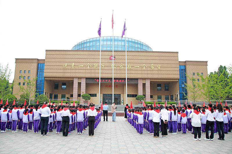 团市委领导、教体局领导为新中队授中队旗,我校领导为新聘中队辅导员颁发聘书,少先队员为新聘辅导员授红领巾,在热烈的掌声中,学校一年级13个中队正式成立。