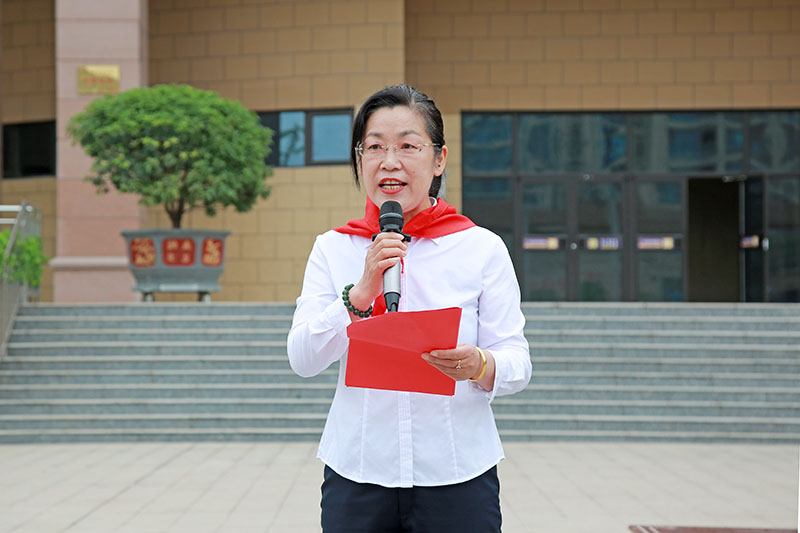 学校少工委副主任徐翔同志宣读一年级建队和新队员名单及聘任少先队辅导员的决定,她寄语少先队员们,在星星火炬的旗帜下,树立远大理想,肩负起中华民族伟大复兴的重任,让胸前的红领巾更加鲜艳,做有担当的新时代少先!