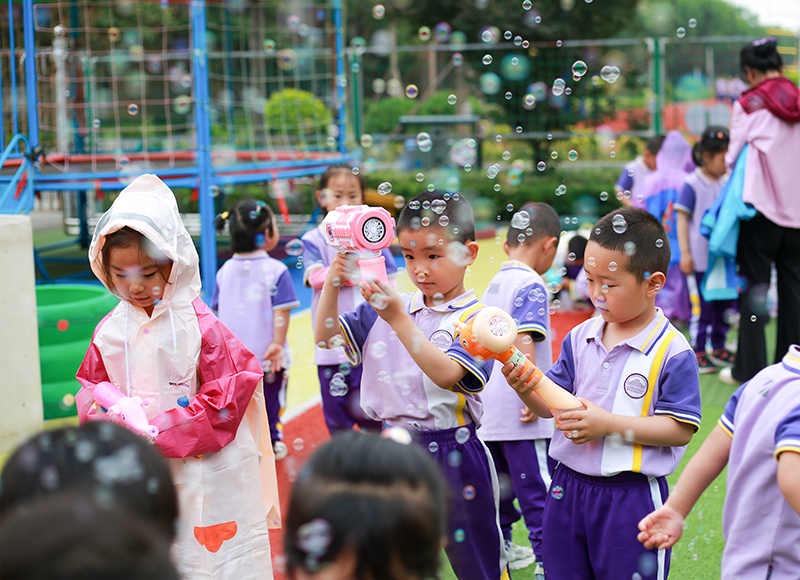 五彩缤纷的雨衣,蓄满水的水枪,走进清凉水世界,打响水枪狂欢战;泡泡一吹 快乐在飞梦幻柔软的泡泡大战开始。