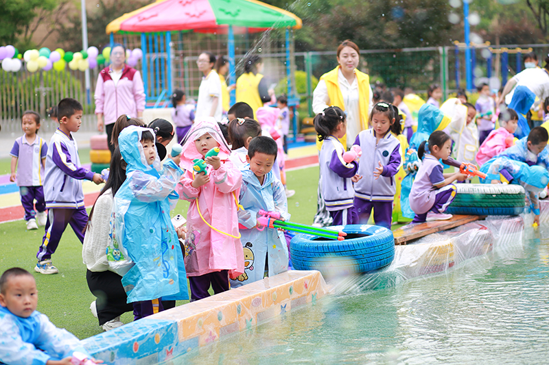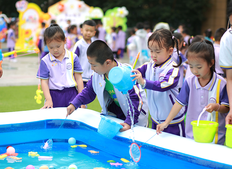 水花四溅,欢乐洋溢在每个孩子脸上,这一刻听到的是一阵阵欢笑,感受到的就是无限地欢乐;迷你鱼竿,小小渔网,充气水池,还有五颜六色的小鱼,孩子们在钓鱼游戏里,感知到了收获的乐趣。