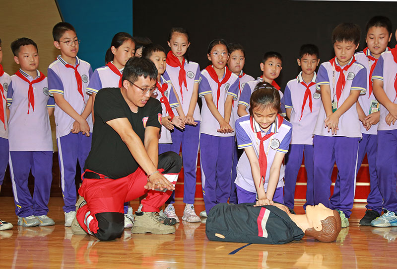 “穿上救生衣什么感觉?”“按压时有什么感受?”“按压是一个持续的过程,手不能离开被救者胸部。”……培训采取互动、纠偏的方式,让学生在体验过程中,学到真本领,悟到真含义,指导大家主动落实到行动中,积极预防溺水,敬畏大自然,珍爱自己和他人的生命。