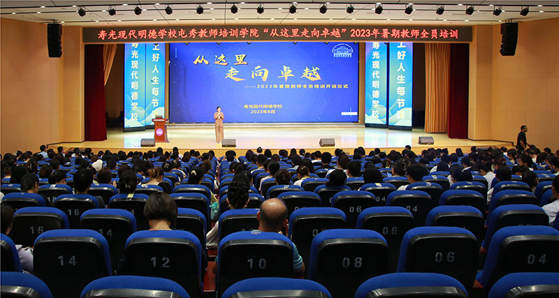 8月20日上午,寿光现代明德学校"从这里走向卓越"2023年暑期教师全员培训会在弘德礼堂拉开帷幕。集专家报告、班主任论坛、教师骨干分享、教师头脑风暴、多维评价等于一体的分层培训,全面激活了教师的学习活力,为老师们专业成长注入了全新的明德力量。