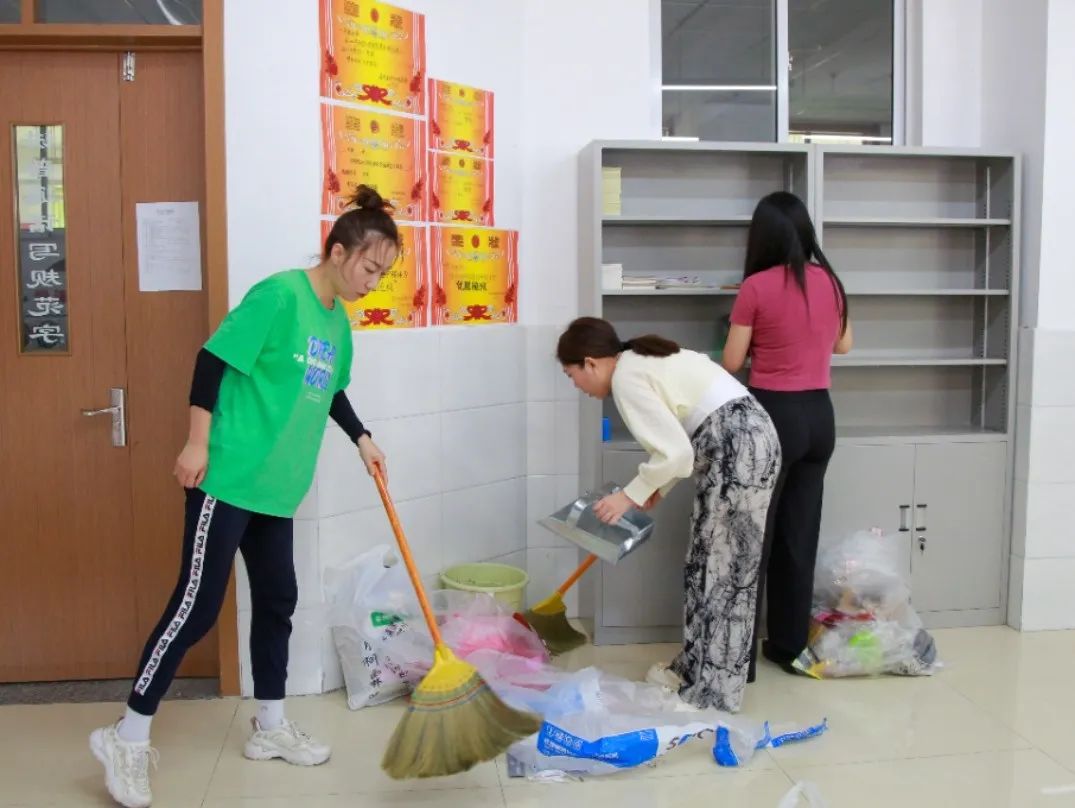 远眺天空澄澈,近看草木葳蕤。教室宿舍,重新调整;桌椅床铺,重新分配,老师们化身搬运工、清洁工,用自己的汗水,换来了窗明几净,洁净如新。