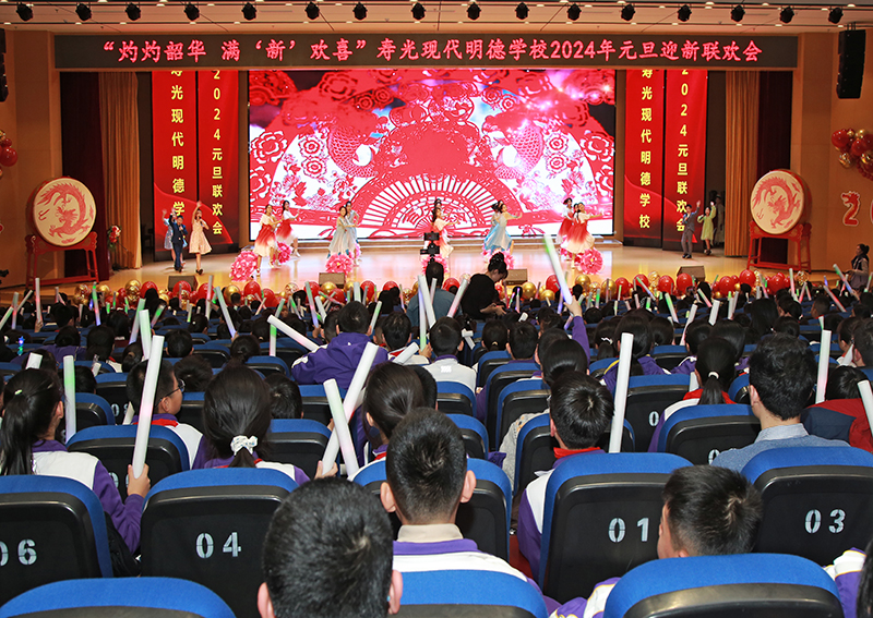 12月26日,寿光现代明德学校举行“灼灼韶华 满‘新’欢喜”2024年元旦迎新联欢会,全校师生用一次精心准备的联欢盘点一年收获,开启新年新篇章。
