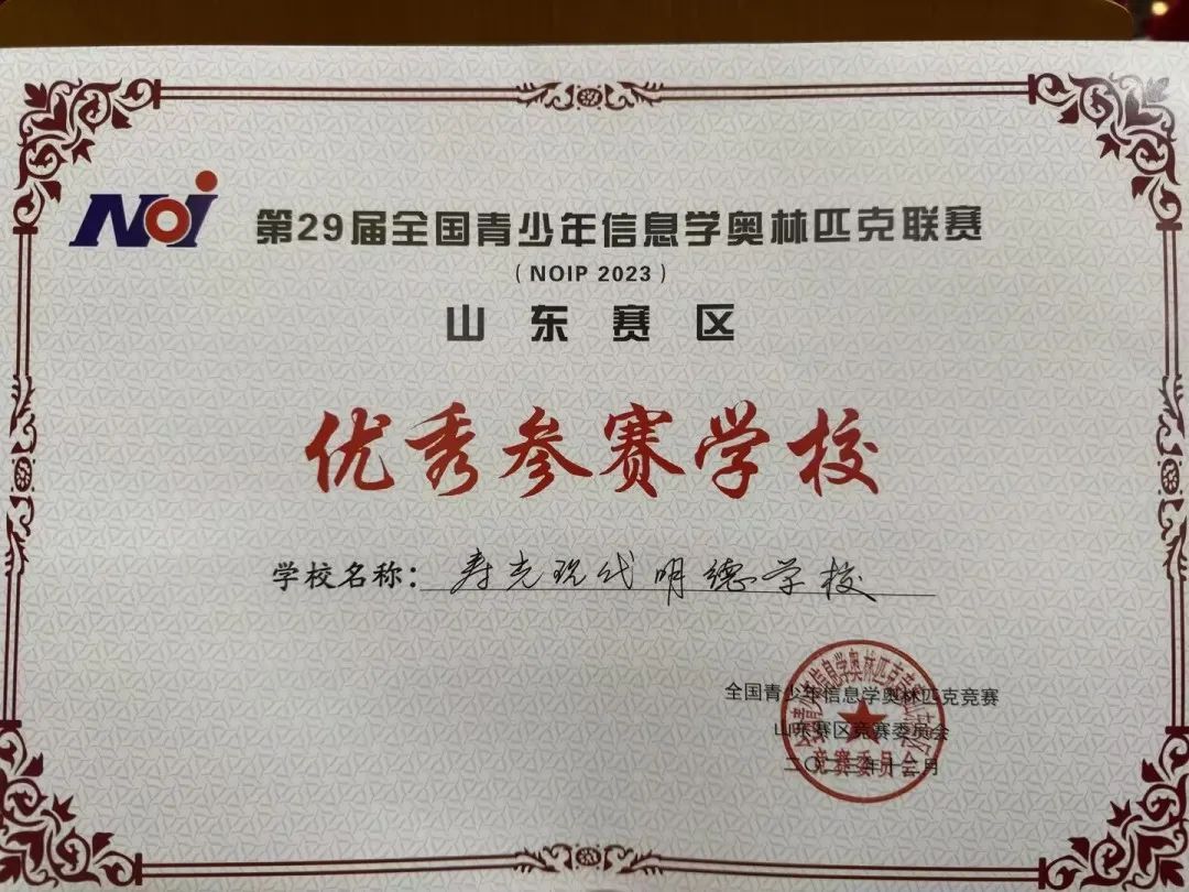 在山东省信息学奥赛表彰会议中,因参赛学生成绩优异,我校被评为“山东省优秀参赛学校”。