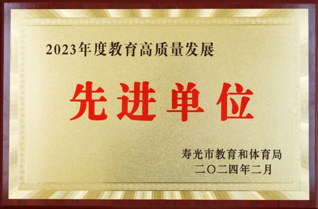 新岁启封,捷报再传。2月22日,寿光市2024年度教育工作会议召开,会议表扬了全市2023年度教育工作先进单位,学校喜获2023年度教育高质量发展先进单位、学前教育高质量发展先进单位、群众满意学校创建先进单位、教学工作先进单位、教师队伍建设先进单位、素质教育先进单位、学校管理先进单位、平安和谐校园建设先进单位八项荣誉,包揽受表扬学校全部奖项。