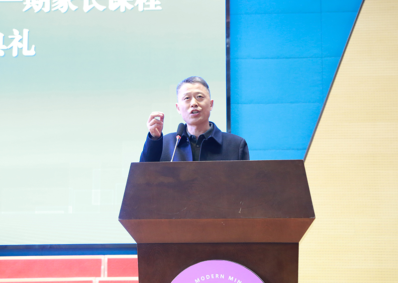 为帮助家长掌握科学的育人知识,营造良好的家庭文化氛围,建设学习型的家庭,现代明德家长学校积极发挥育人引领作用,全力建设家长学校,构建开放多元的家长课程,给家长提供切实有效的指导,给孩子创造一个更健康的成长环境。3月24日下午,学校举行2024年度第一期家长课程暨开班典礼,课上寿光市政协原主席、关工委主任,寿光市优秀传统文化志愿者讲师团团长王茂兴做专题报告。徐翔副校长主持,七年级全体教师、家长参加活动。