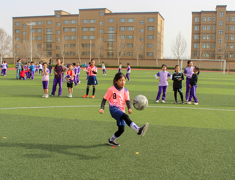 足球、排球、篮球、毽子在孩子的足尖手上跳跃,屏息凝神,调整角度、发力冲击,热情与阳光一起升腾,专注和激情共同飞扬。