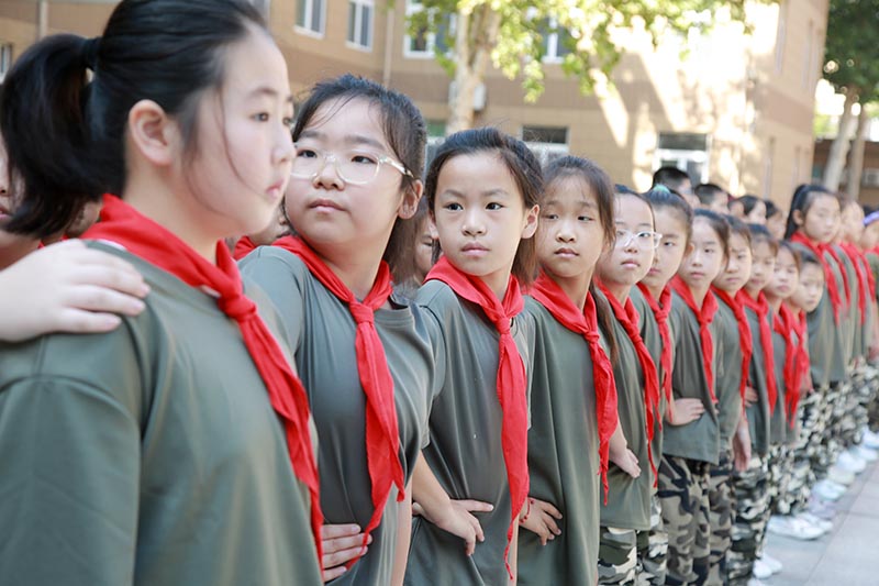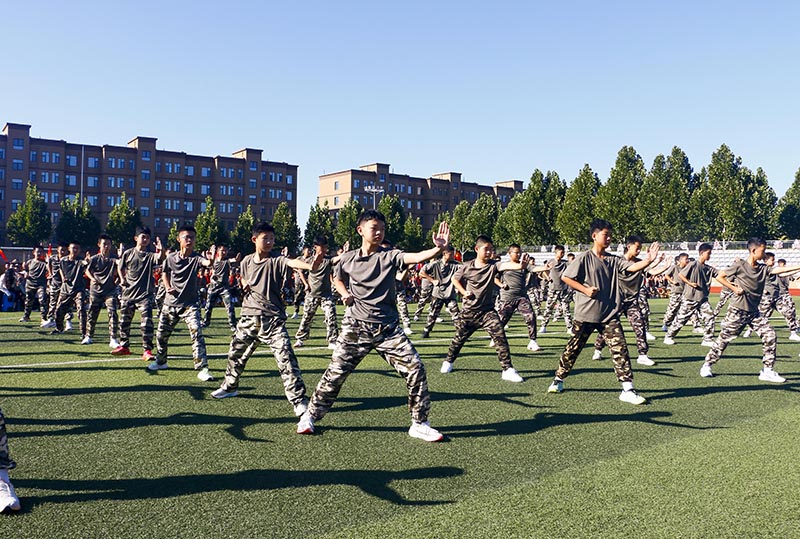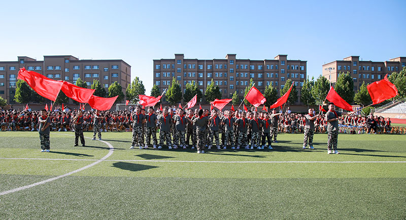 开营仪式上,学校领导寄语明德学子,通过训练抛掉身上的稚气、娇气,树立正气、志气、豪气,为新学年奠基。鼓励大家以饱满的热情、激昂的斗志投入训练,展现明德学子积极向上、团结友爱的精神风貌。