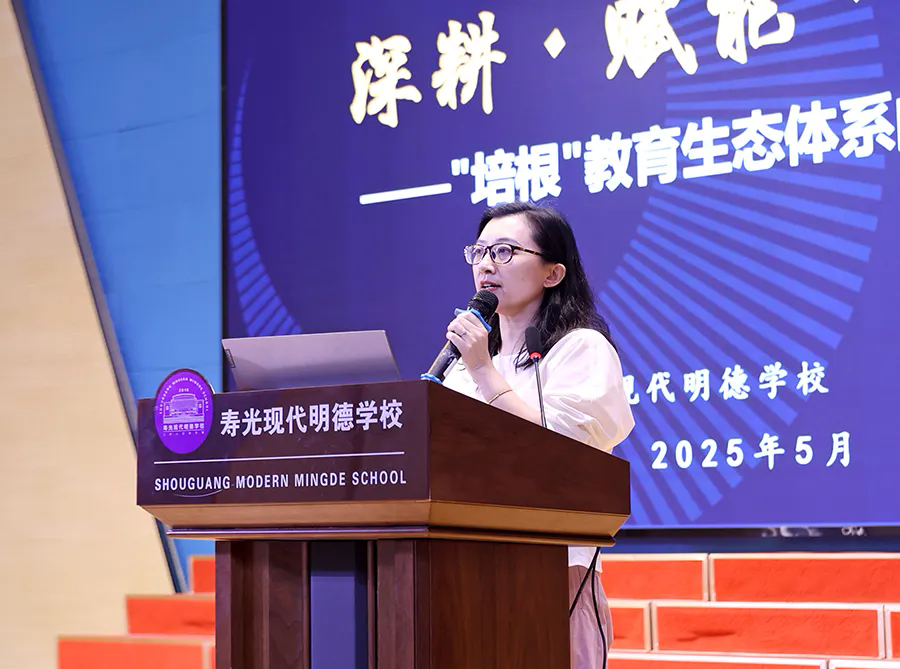 陈坤主任在《深耕 赋能 共生——培根教育生态体系的校本文化建构与实践》的报告中,详细介绍了学校教师团队以“五度课堂”建设为抓手,通过课程开发、专业发展、教研协同等举措构建教育生态系统的明德经验。