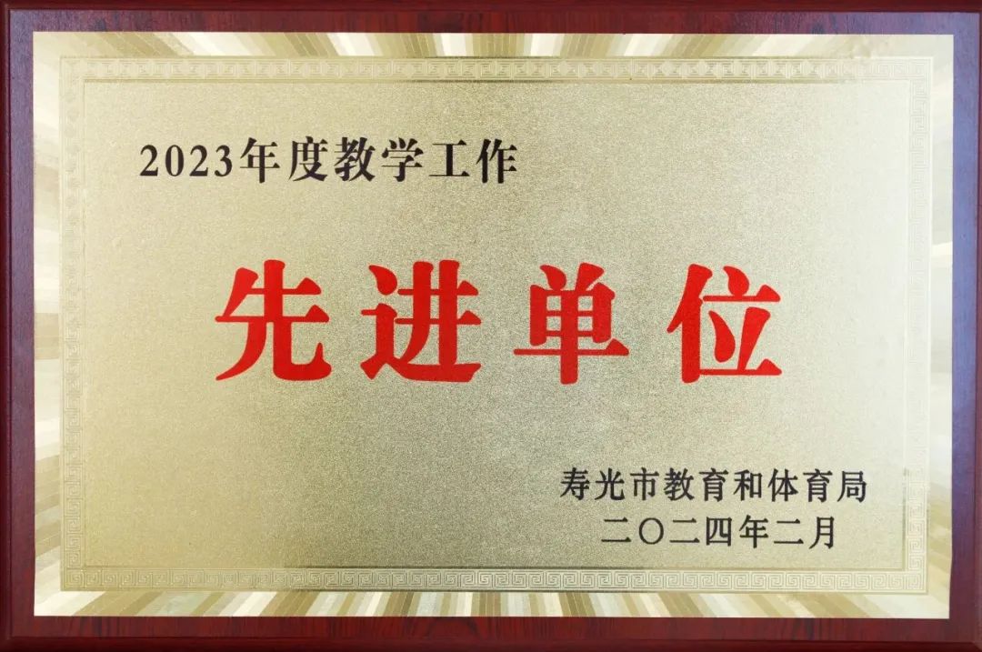 新岁启封,捷报再传。2月22日,寿光市2024年度教育工作会议召开,会议表扬了全市2023年度教育工作先进单位,学校喜获2023年度教育高质量发展先进单位、学前教育高质量发展先进单位、群众满意学校创建先进单位、教学工作先进单位、教师队伍建设先进单位、素质教育先进单位、学校管理先进单位、平安和谐校园建设先进单位八项荣誉,包揽受表扬学校全部奖项。