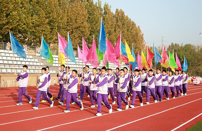伴随着雄壮激昂的《运动员进行曲》,开幕式正式开始。英姿飒爽的护旗方队健步入场,紧随其后的各个级部方队皆出奇招、各有特色,跳皮筋、花样游泳、舞蹈展示等,惊艳全场。